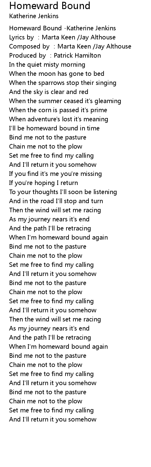 | [00:00.00] | Homeward Bound Katherine Jenkins |