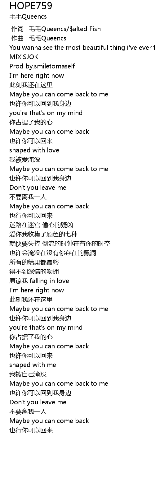 | [00:00.000] | 作词 : 毛毛Queencs/$alted Fish |