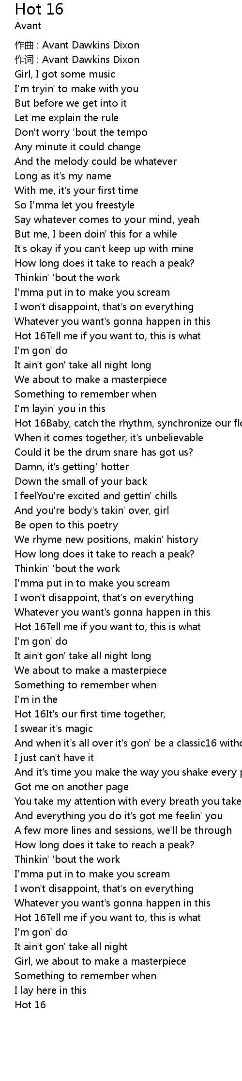 | Hot 16It' s our first time together, | |