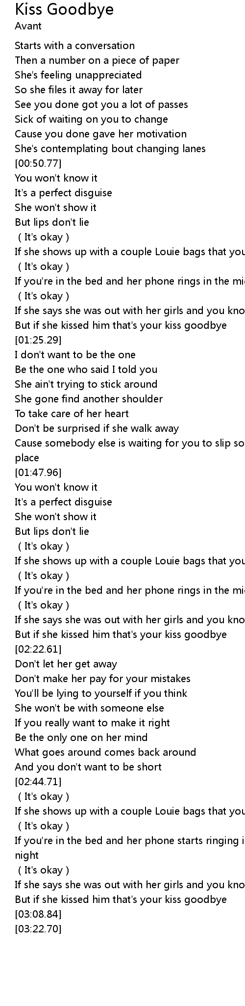 | [03:02.16] | But if she kissed him that' s your kiss goodbye |