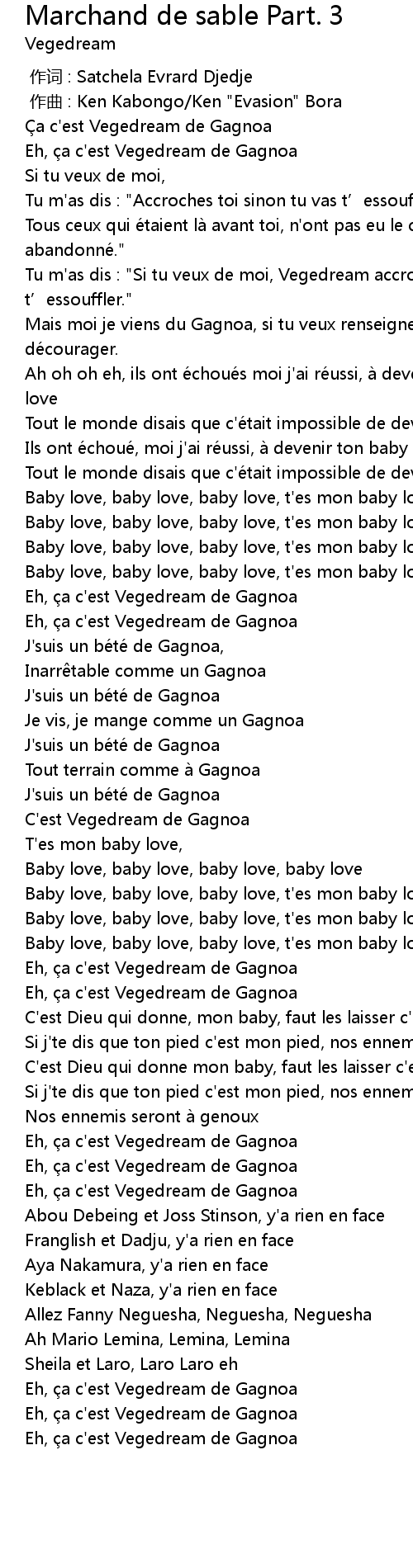 | [01:28.38] | C'est Vegedream de Gagnoa |