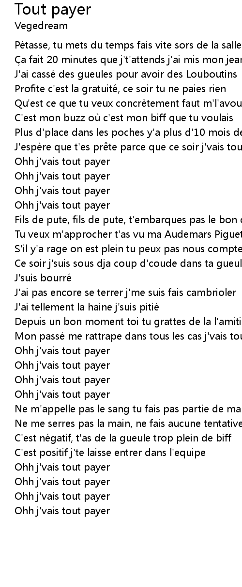 | Song | Tout payer |