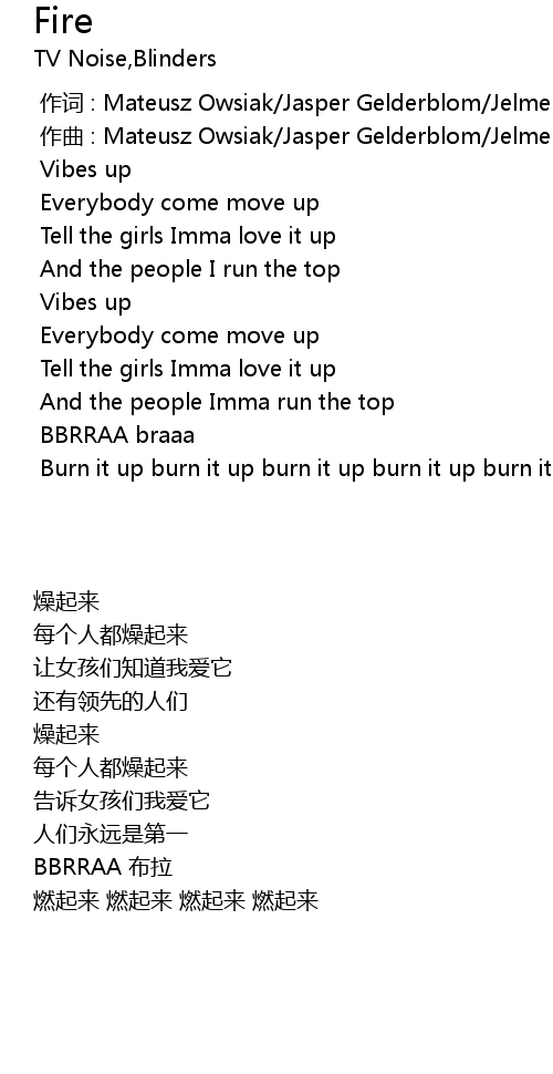 | [01:31.936] | Burn it up burn it up burn it up burn it up burn it up |
