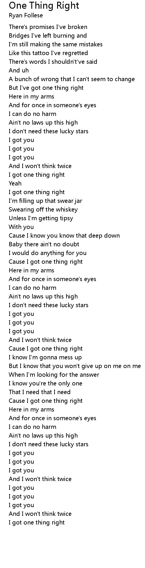 Cause I got one thing right |