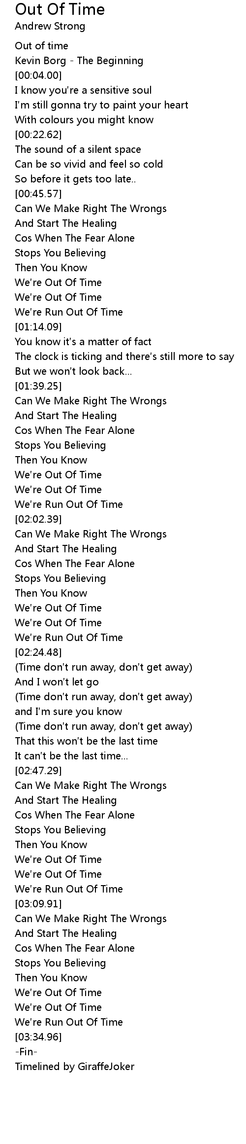 | [03:01.50] | We re Out Of Time |