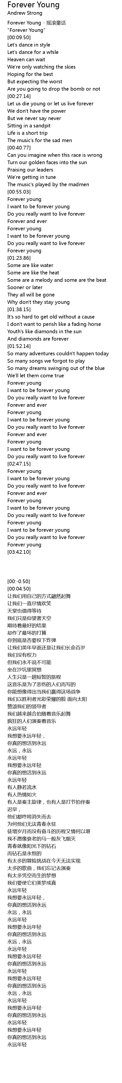 | [00:-0.50] | Forever Young - 摇滚童话 |