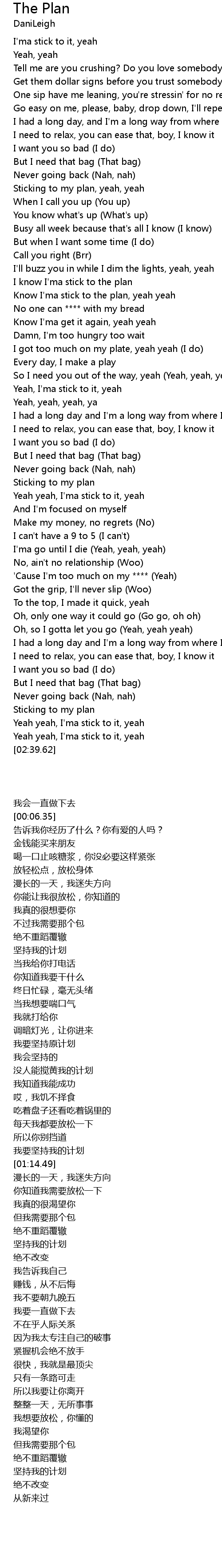 | [00:36.26] | Sticking to my plan, yeah, yeah |