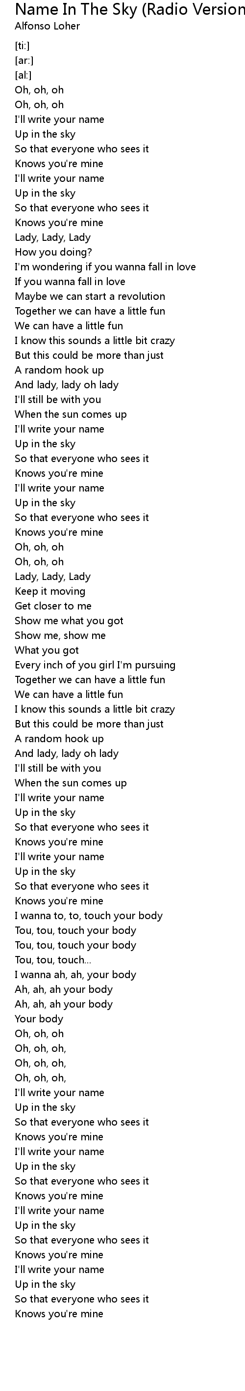 I wanna to, to, touch your body |