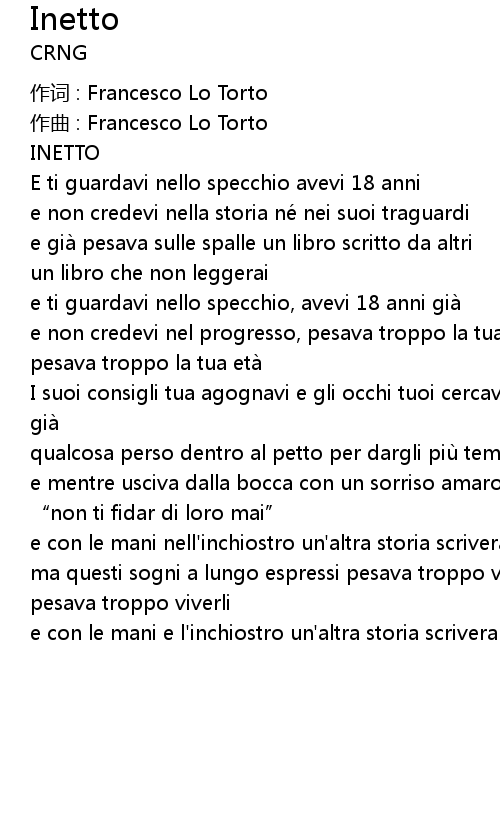 | 作词 : Francesco Lo Torto | |