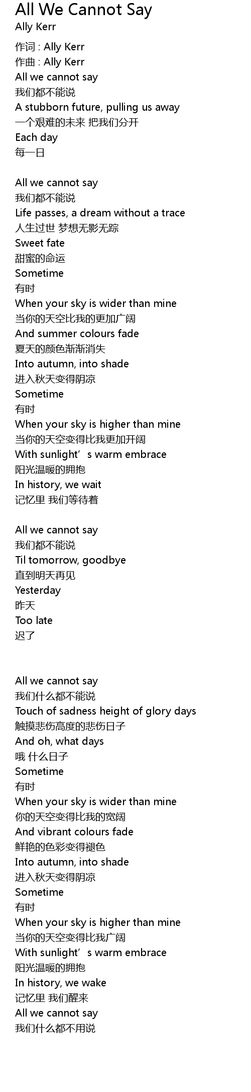 | 作词 : Ally Kerr | |