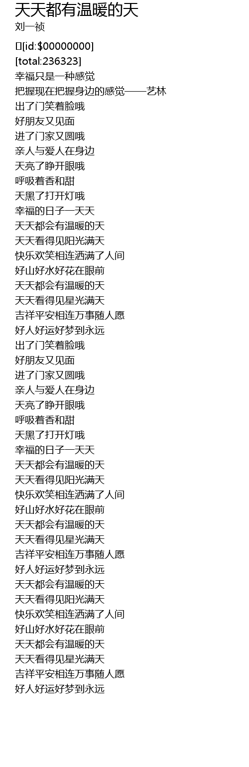 | [01:09.585] | tian tian du hui you wen nuan de tian |