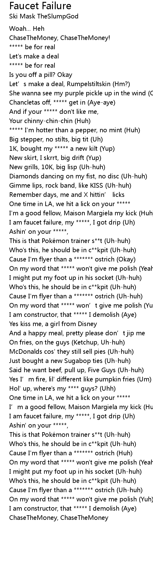 | [00:52.53] | I am faucet failure, my *****, I got drip (Uh) |