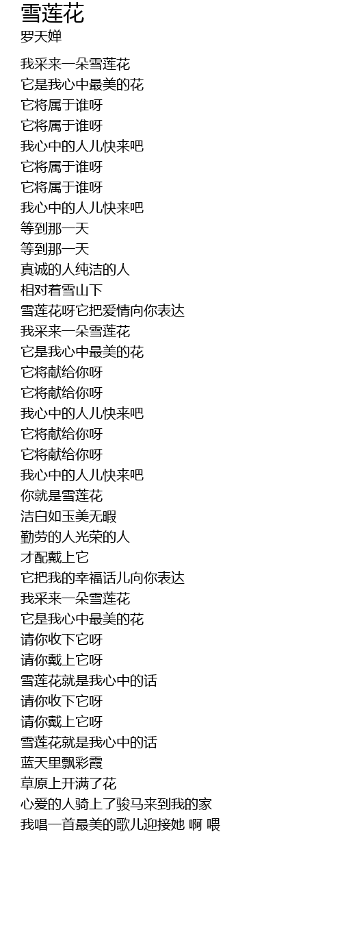 | [02:53.820] | 雪莲花就是我心中的话 |