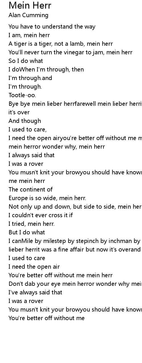 I need the open airyou're better off without me mein herr.don't dab your eye, mein herror wonder why, mein herr |