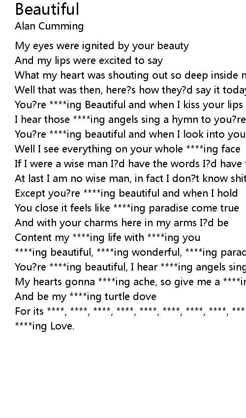 You?re ****ing beautiful, I hear ****ing angels sing |