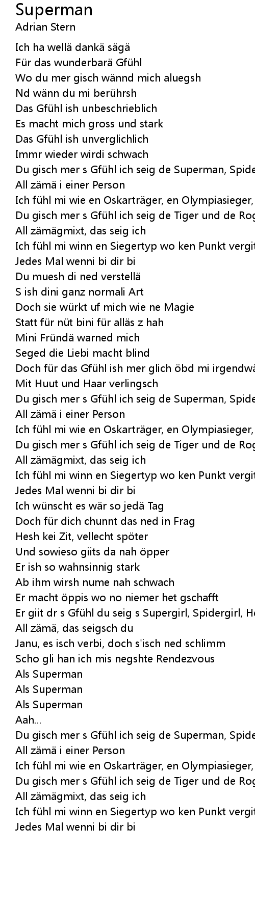 | Du gisch mer s Gfü hl ich seig de Superman, Spiderman, Batman und de Robin | |