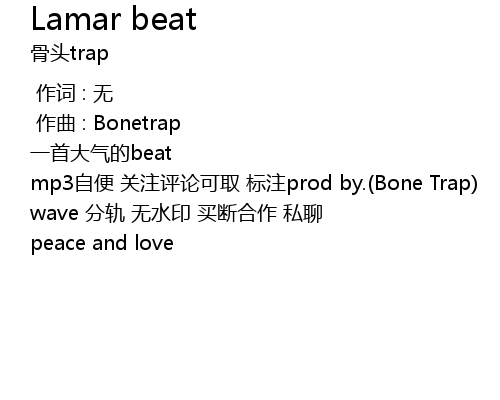 | [00:05.423] | mp3自便 关注评论可取 标注prod by.(Bone Trap) |