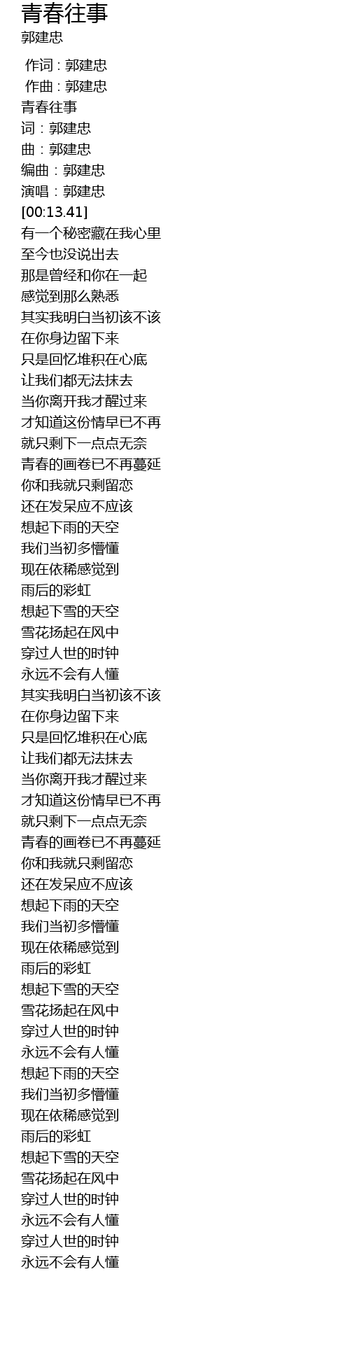 | [00:18.17] | 有一个秘密藏在我心里 |
