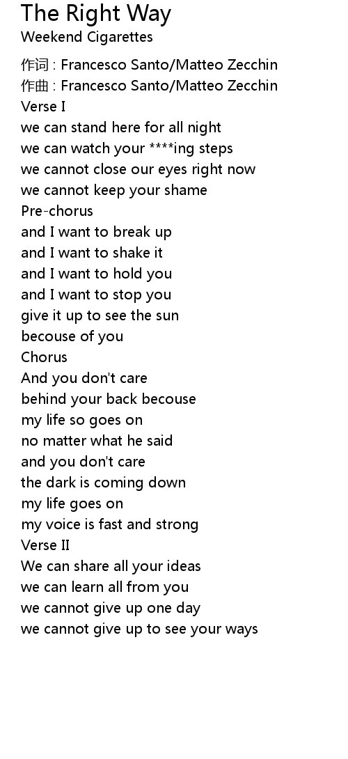 | Song | The Right Way |