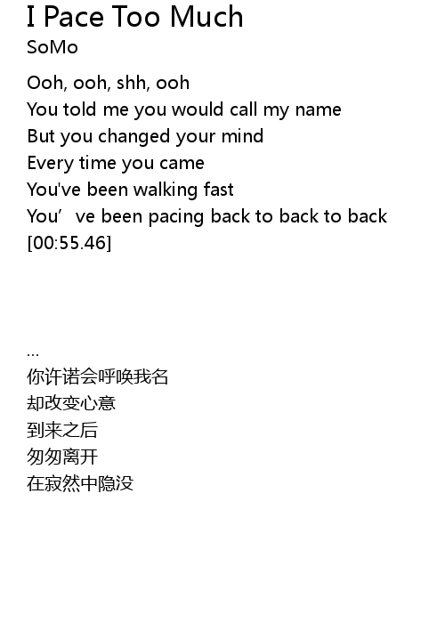 | Song | I Pace Too Much |