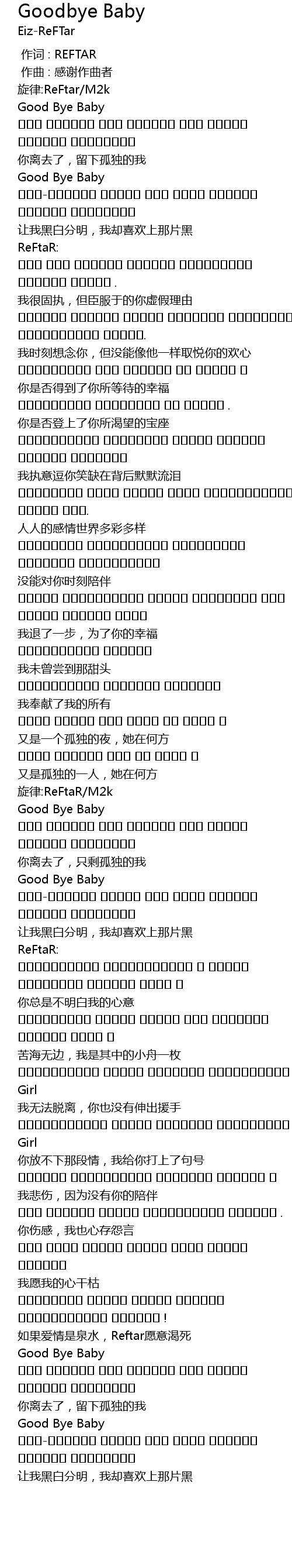 | [00:00.000] | 作词 : REFTAR |