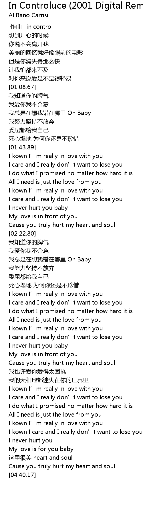 | [04:12.47] | I kown I care and I really don' t want to lose you |