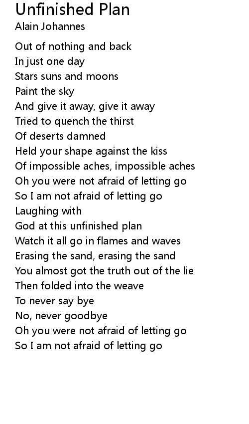 God at this unfinished plan |