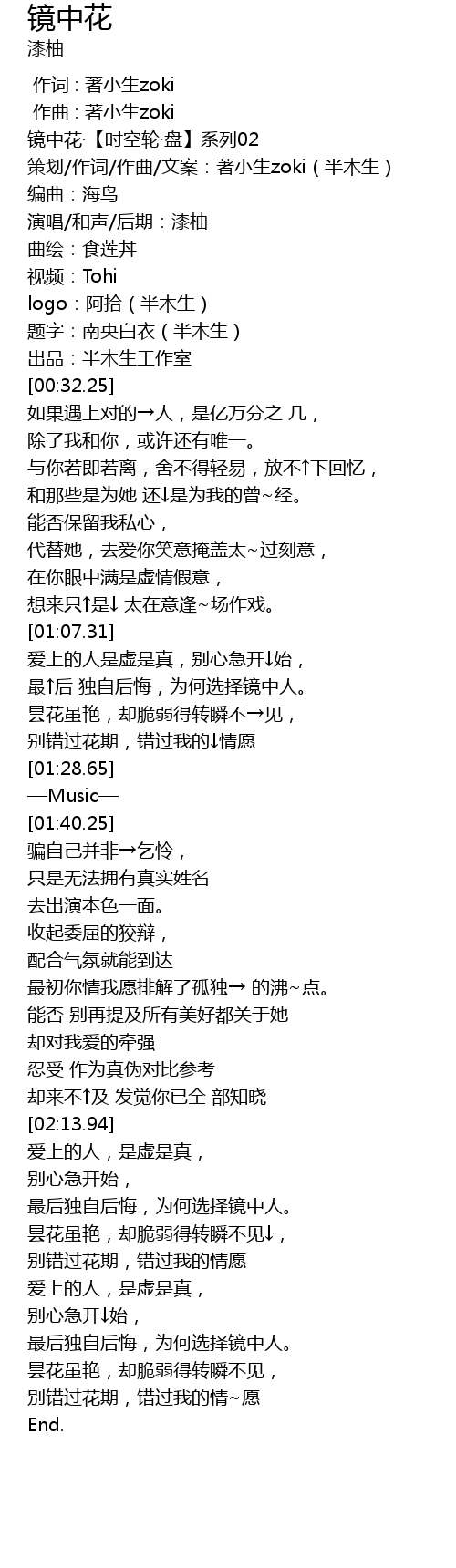 | [01:12.47] | 最↑后 独自后悔,为何选择镜中人。 |