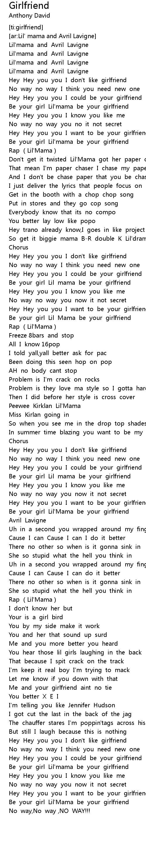 | [00:02.360] | Lil'mama and Avril Lavigne |