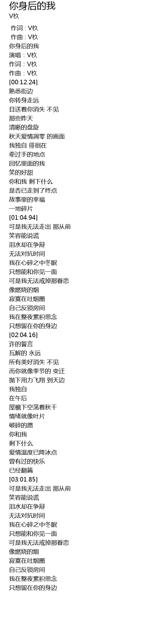 | [00:01.98] | 你身后的我 |