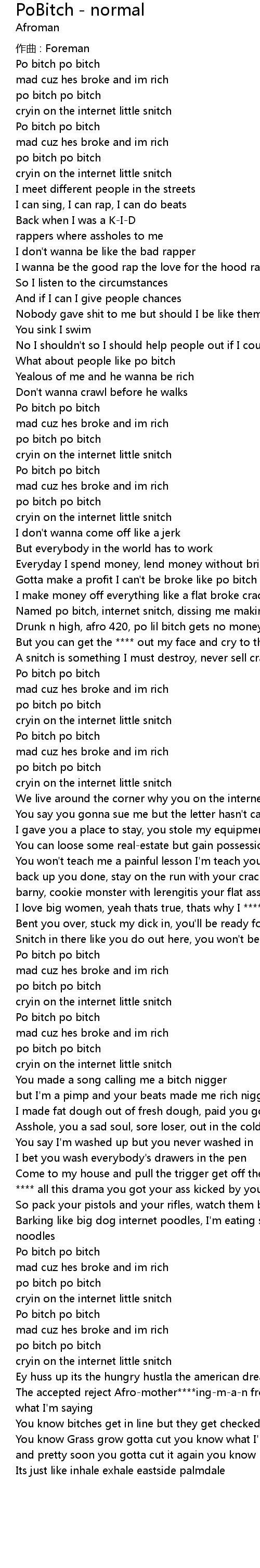 | You made a song calling me a bitch nigger | |