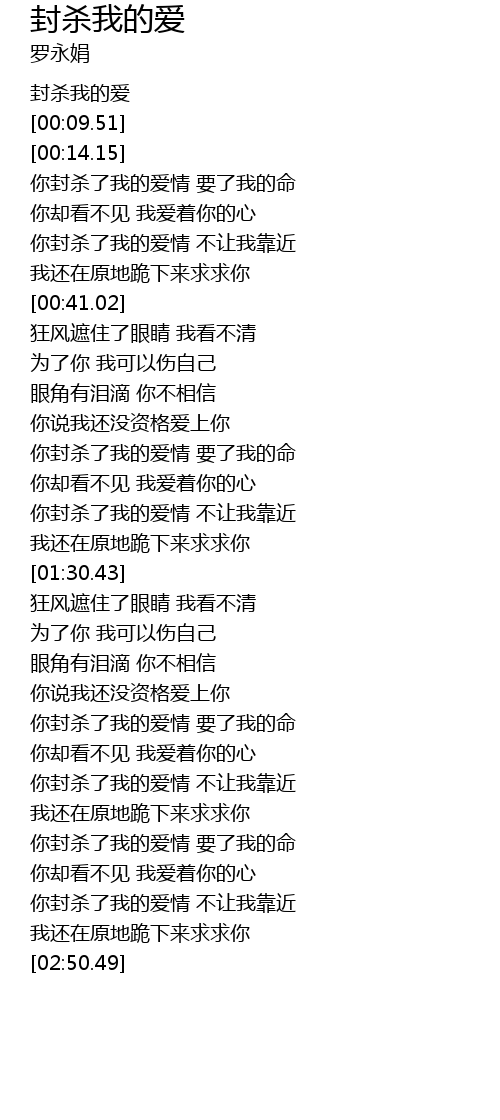 | [02:25.24] | 你封杀了我的爱情 要了我的命 |
