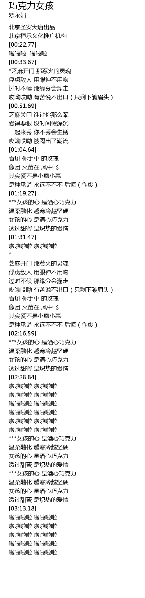 | [02:23.48] | 女孩的心 是酒心巧克力 |