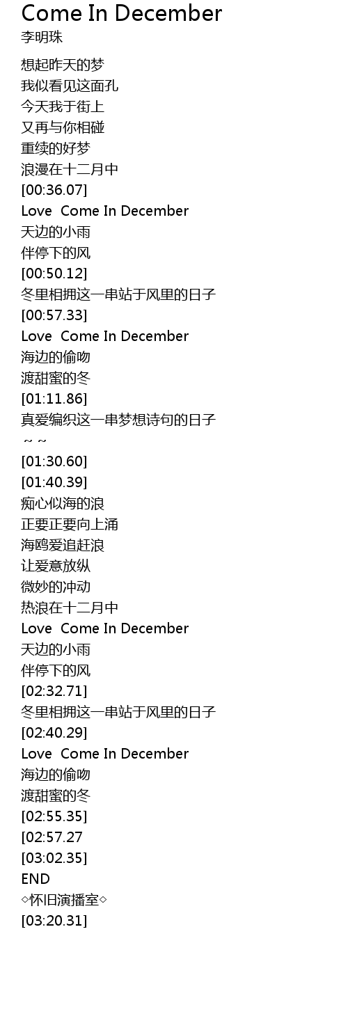 | [00:59.29] | Love Come In December |