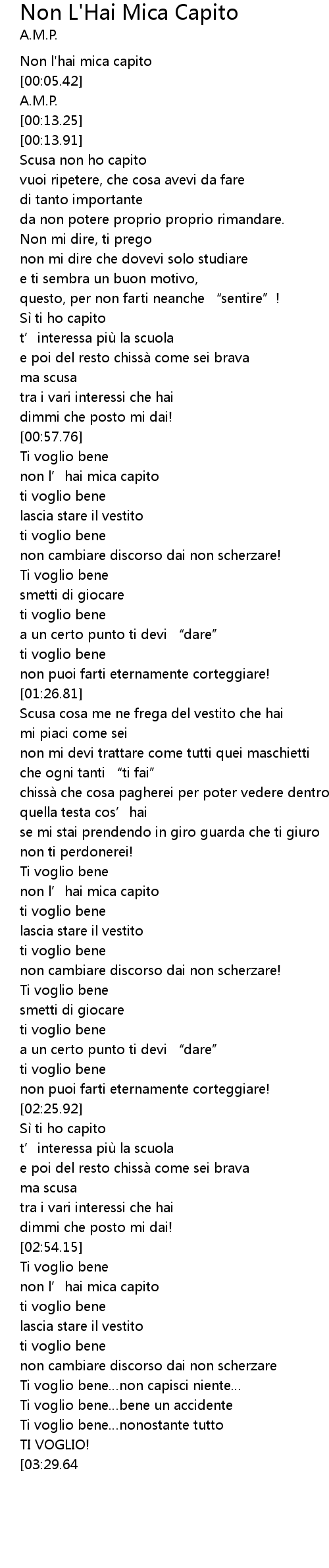 | [03:09.13] | Ti voglio bene non capisci niente |