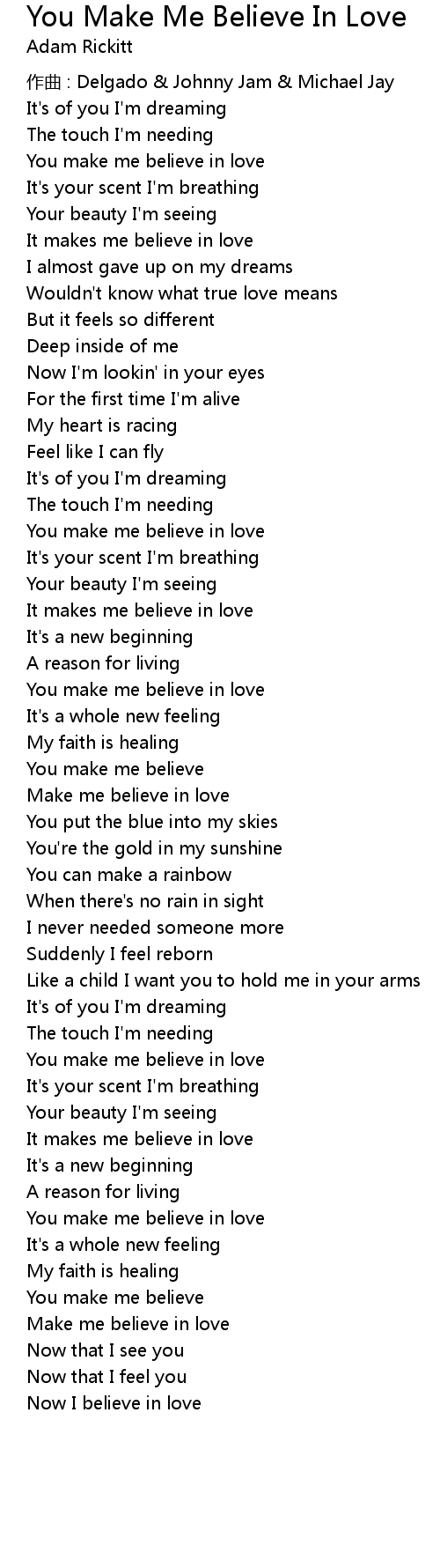| You make me believe in love | |