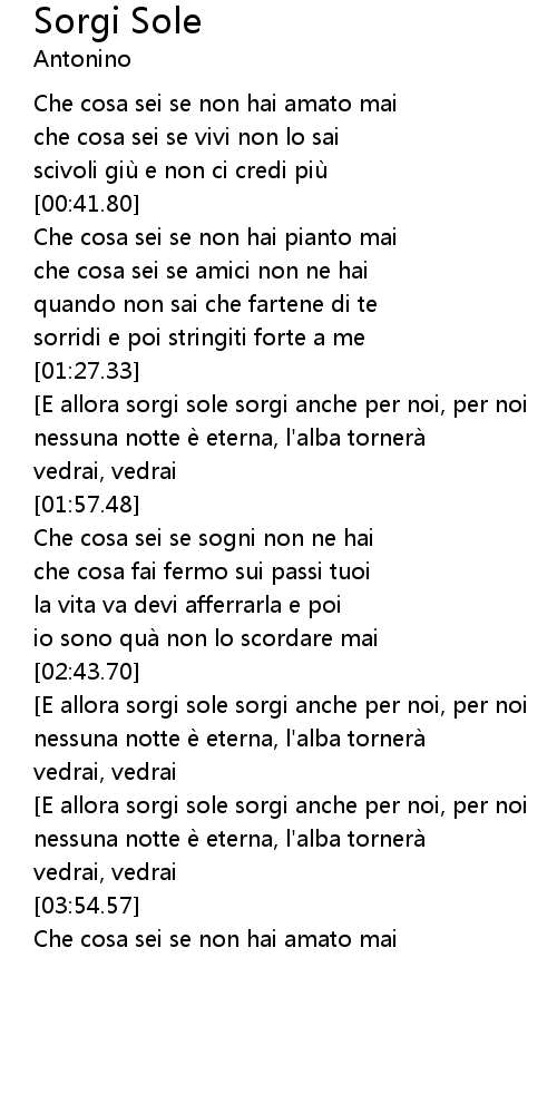 | [03:19.38] | E allora sorgi sole sorgi anche per noi, per noi |