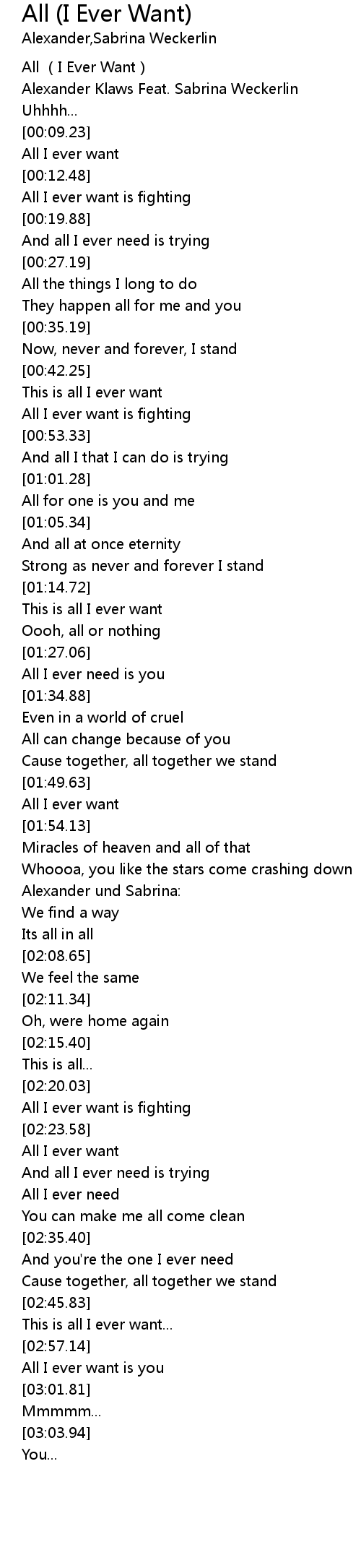 | [00:01.67] | Alexander Klaws Feat. Sabrina Weckerlin |