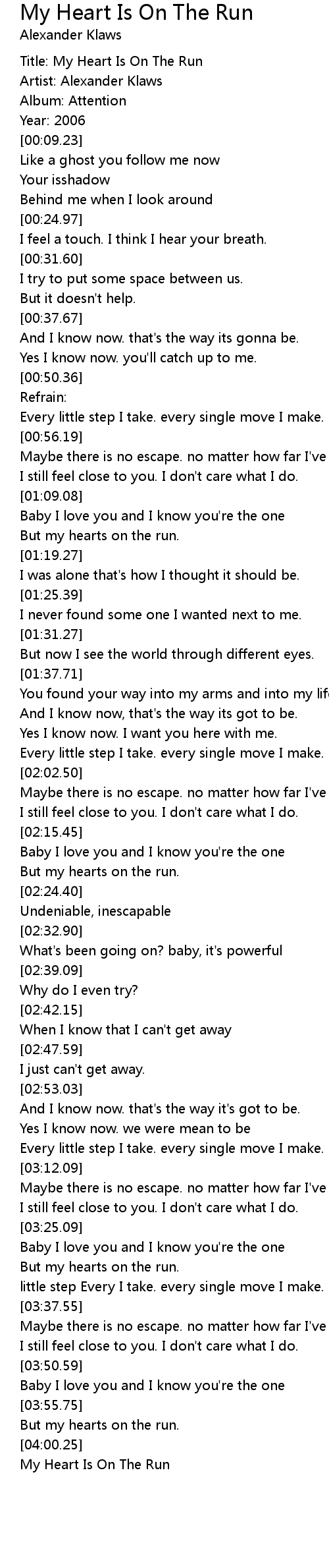 Title: My Heart Is On The Run |