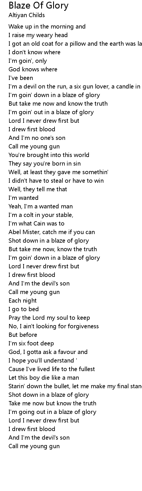 I'm goin' down in a blaze of glory |
