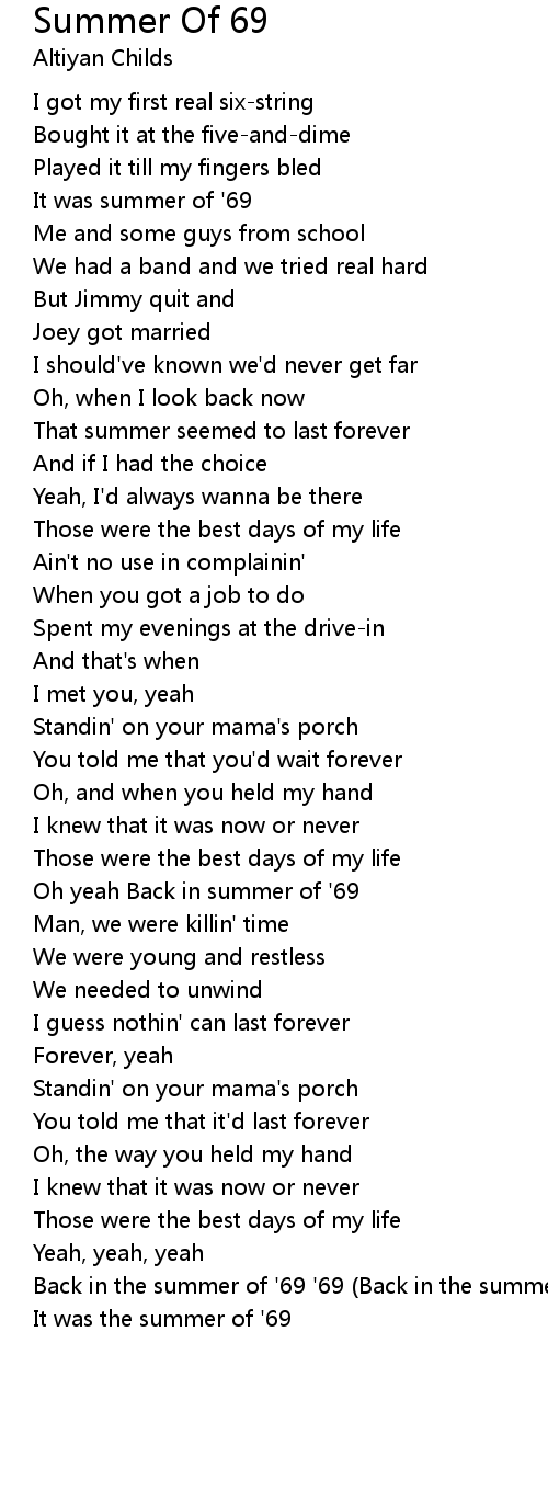 Summer Of 69 Lyrics