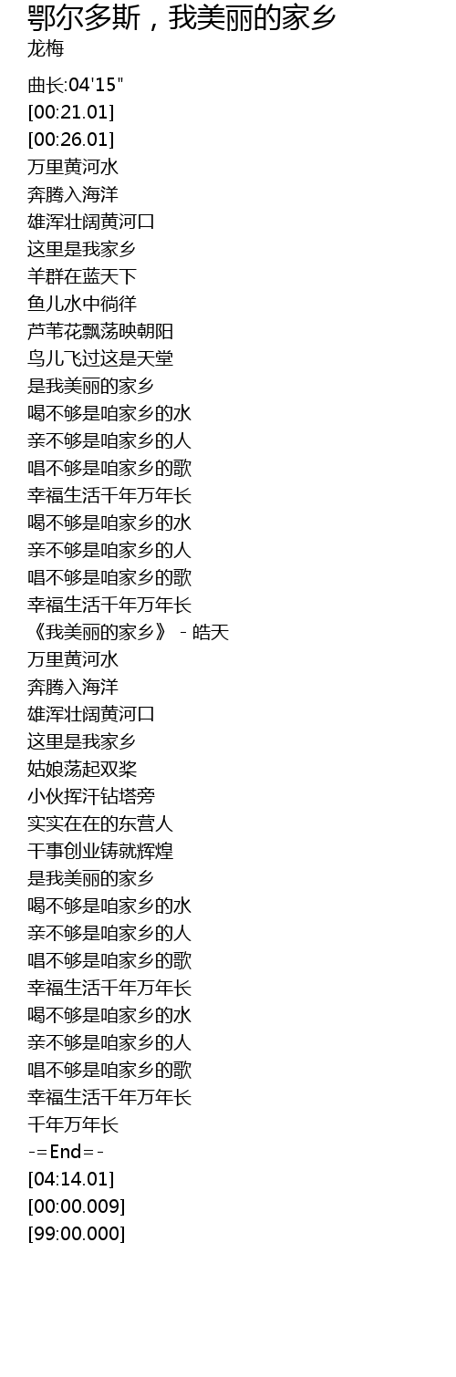 | [02:12.78] | 《我美丽的家乡》 - 皓天 |