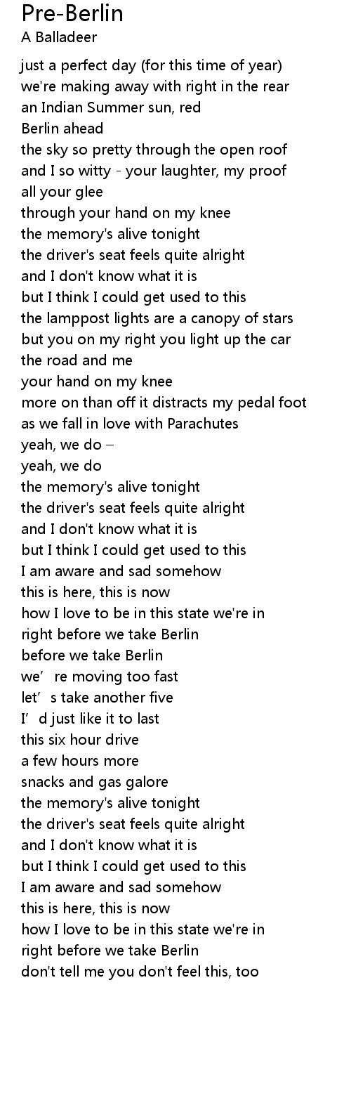 | Song | Pre-Berlin |
