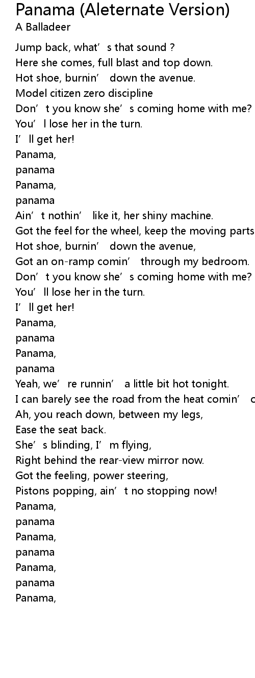 | Song | Panama (Aleternate Version) |