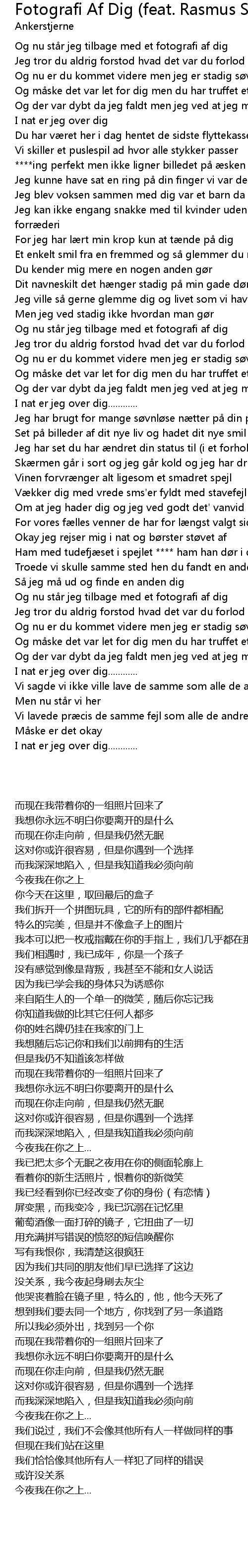| [00:00.03] | Og nu står jeg tilbage med et fotografi af dig |