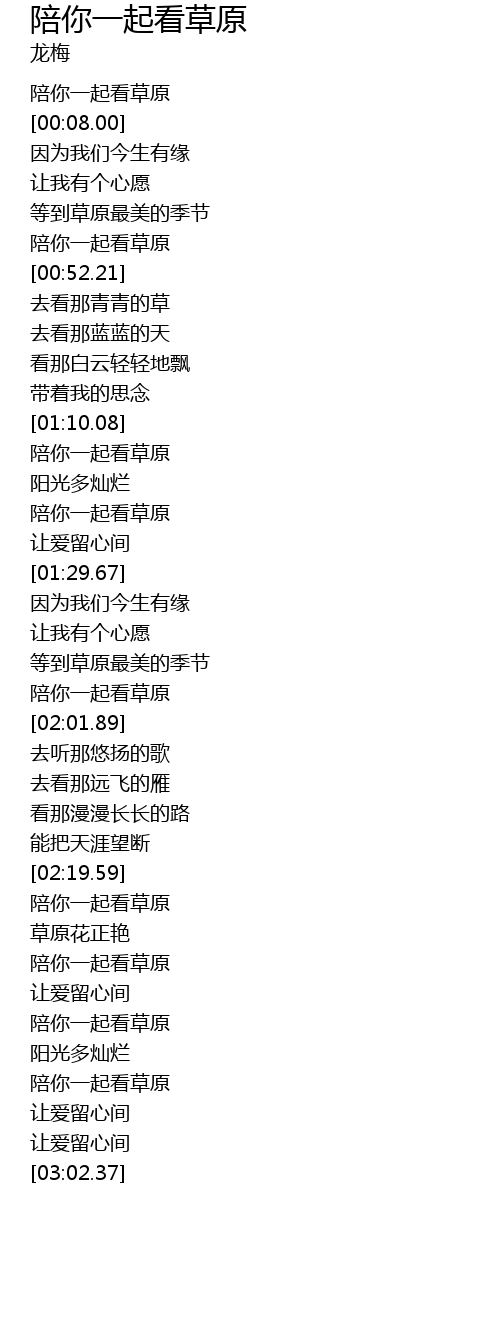 | [02:37.63] | péi nǐ yì qǐ kàn cǎo yuán |