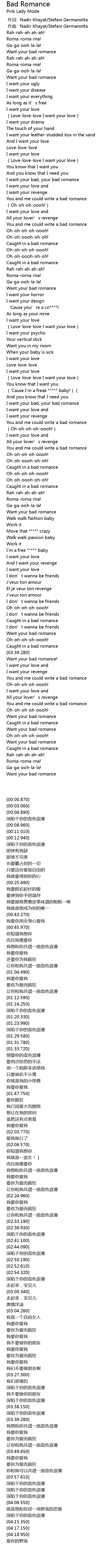 | [00:53.510] | I want your bad, your bad romance |