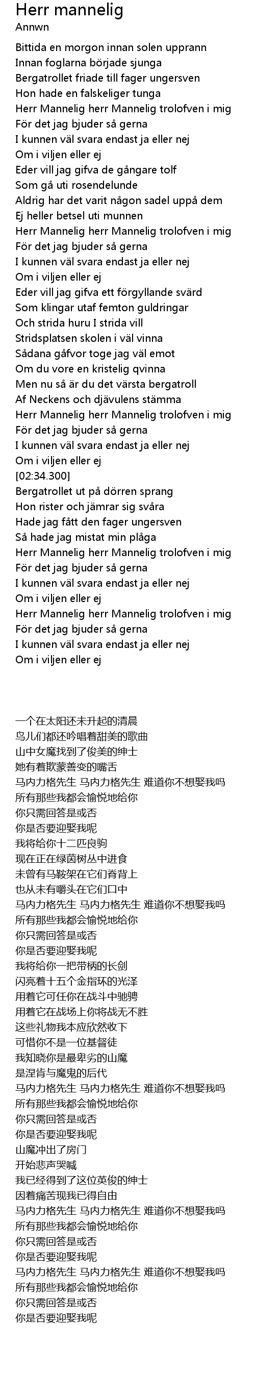 | [02:12.700] | Herr Mannelig herr Mannelig trolofven i mig |