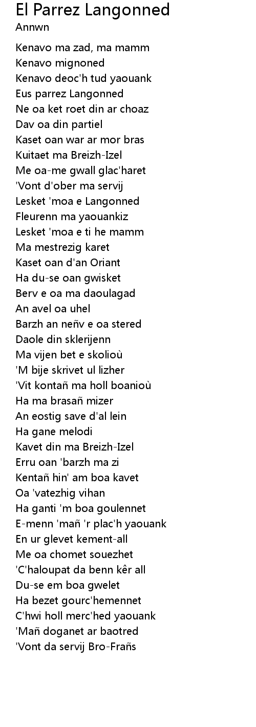 | [03:36] | Emenn ' ma ' r plac' h yaouank |