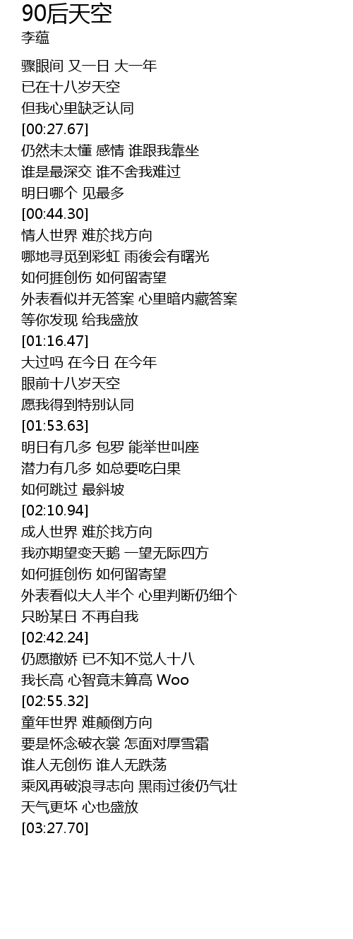 | [00:20.69] | yi zai shi ba sui tian kong |